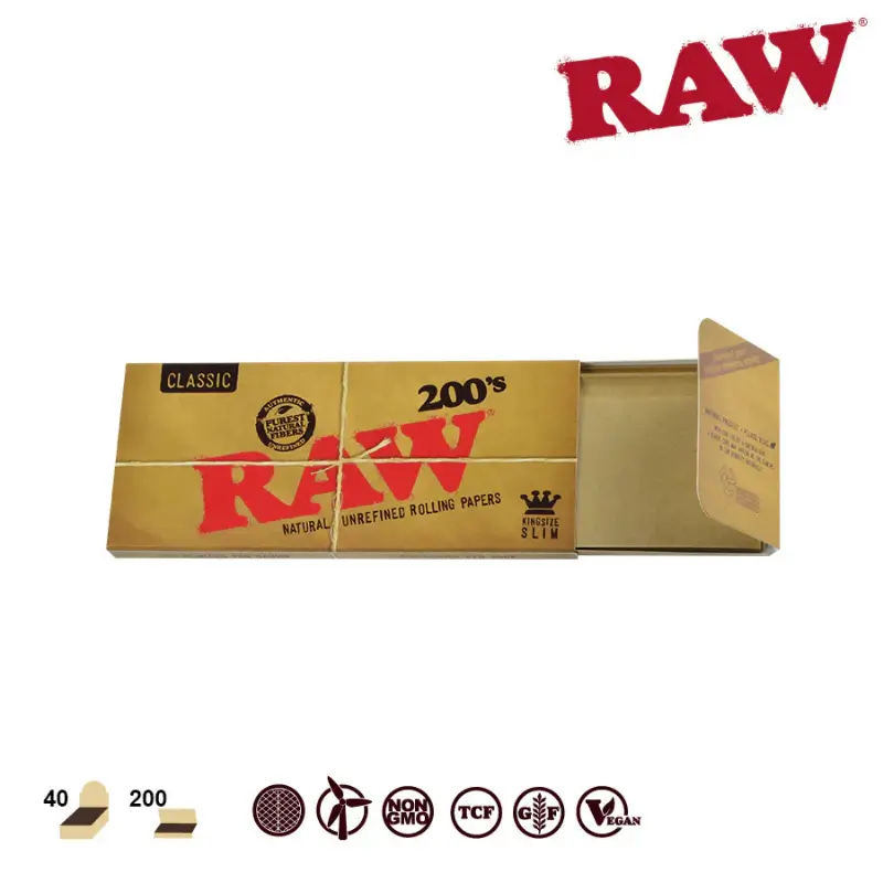 RAW Natural Rolling Papers have developed a cult-like following. RAW are pure, less processed rolling papers unlike anything that you have ever seen or smoked. Because they contain a hybrid blend of unbleached (not chlorine whitened) fibers, the paper is a translucent natural light brown color. RAW is so thin that you can see through it.